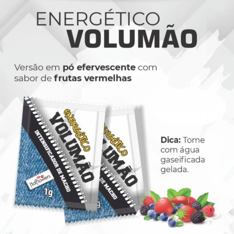 O Volumão Energético é composto por Açúcar, Edulcorantes: Sucralose, Acesulfame-K e Sacarina, Taurina (22,5 mg/ 1g), Cafeína (21 mg/1g), Glucoronolactona (1,4 mg/1 g), Inositol (1,1 mg/1g), Guaraná em pó, Catuaba pó, Ginseng pó, Gengibre pó, Pimenta pó, Canela pó, Vitaminas B2, B3, B5, B6 e B12, Aromas Artificiais, Acidulante Ácido Cítrico, Regulador de acidez, Bicarbonato de Sódio , Corante Artificial Vermelho VI. Não contém glúten.